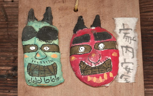 玄関には 表札の横に 家内安全の赤鬼 青鬼が