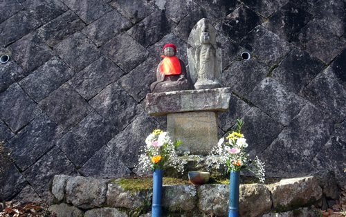 ●里山地形を利用した道は、絶好のウオーキングコース。新緑、紅葉、お地蔵さまも