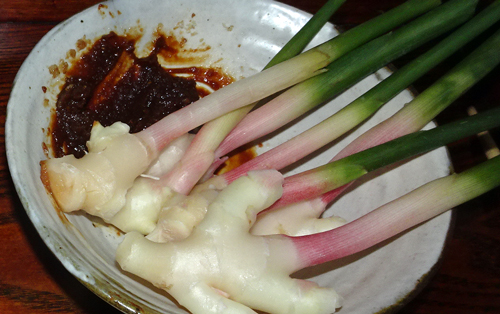 葉ショウガに、酢味噌をつけてポリポリ これが美味しい。