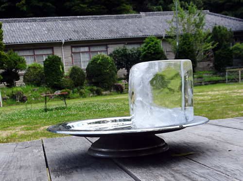 かき氷です。街中より涼しいし、見て涼し気、食べれば、よりヒヤリ。田原産イチゴのシロップです。