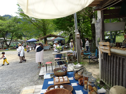 新緑の鳳来 旧門谷小学校校庭で開催のスークへ。多忙でもOFF時間は必要。山は緑一色 風も新緑も、空気も清々し。