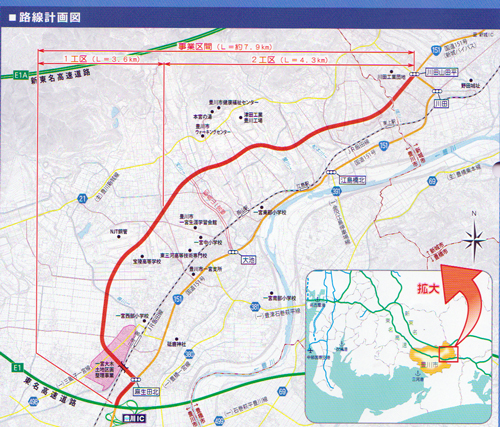 町内を横断する豊川→新城間のバイパス道路です。長年の計画から、現在 地権者説明会、用地測量・買収 工事と具体的に進んでいます。