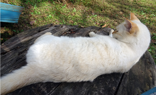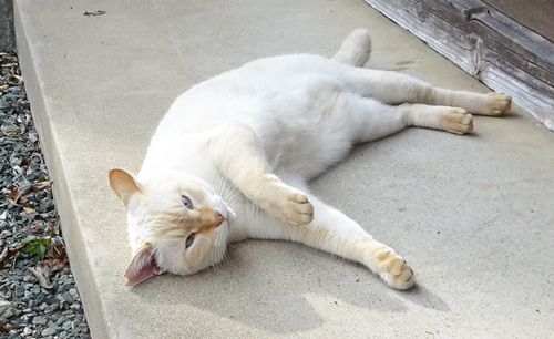 のんびりと外で、陽を浴び 正座や、寝ころび 何を思うのか。