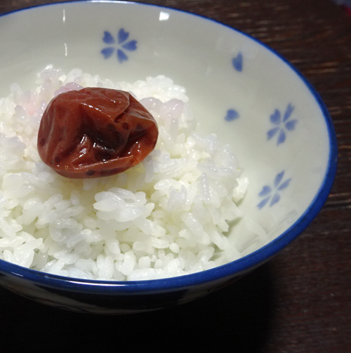 朝 胃が重い時は、お粥さん。胃に優しく、効果あり。梅干しをトッピングして食べます。