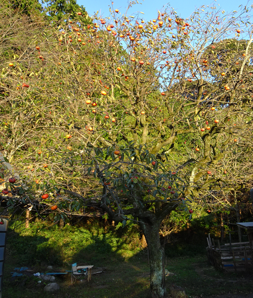庭のカキの実熟し、果肉トロトロ 食べるでもなく見るだけ。