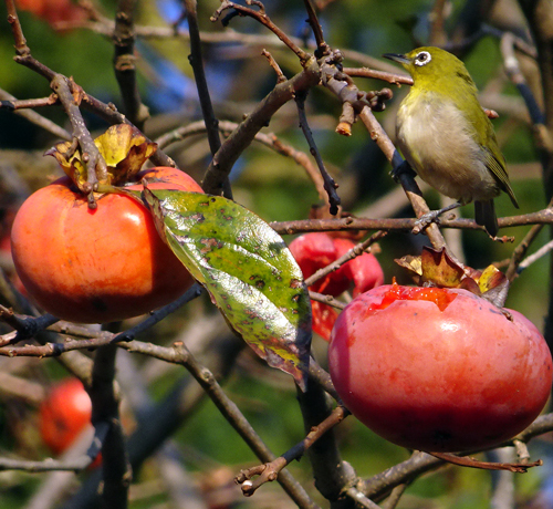 この時期 カキはメジロのエサでこれを見るのが楽しみ。