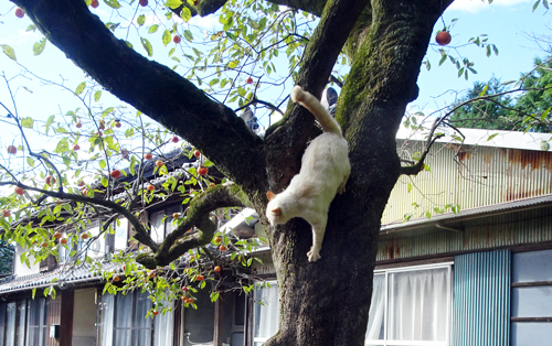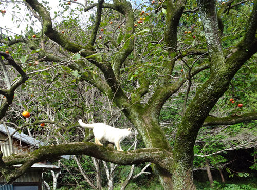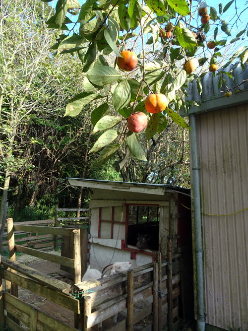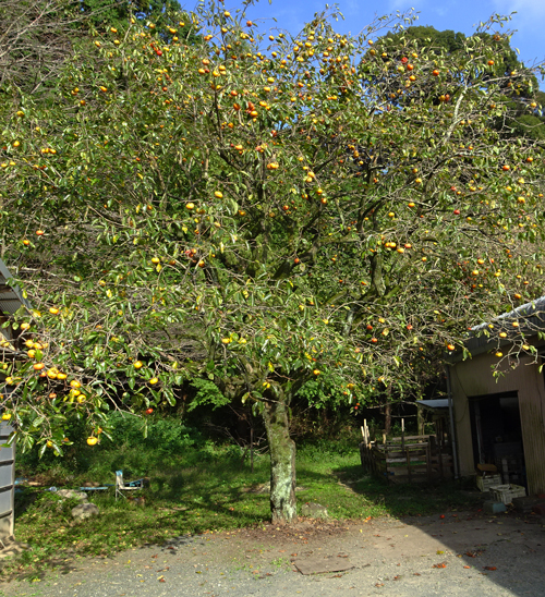 家カキは樹齢100年余。まだまだ元気に実を付け鈴なりです。果実はあまり食べず、ヤギのおやつ、実が熟したら、メジロが押し寄せ啄む。日々、食べるというより、絶景を見てみています。