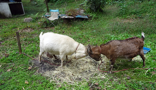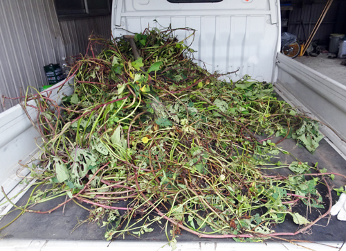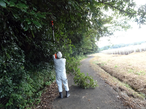 日曜日、道路にかかった家の山の枝葉の伐採をファミリーで実施しました。