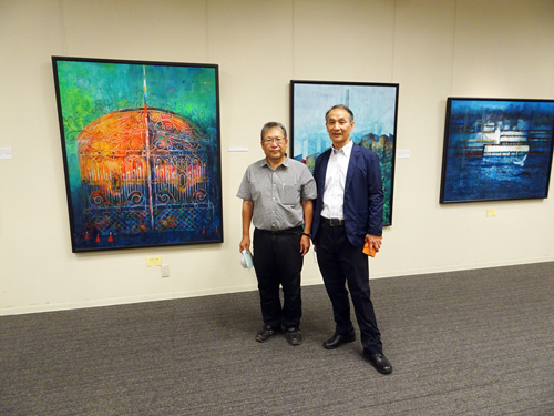 中日新聞朝刊に写真入りで絵画展が紹介されたので、新聞見たよと挨拶する観覧者多数。