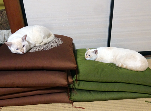●添え書きに 我が家も猫ちゃん(ネネ、ムサシ、チャチャ、コジロウ)に元気をもらっています。 ネコ名前は、歴史上の人ばかり。歴女かどうかは知りませんが、短歌同好者です。