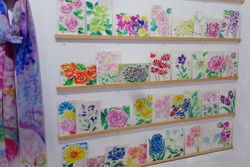 ギャラリー内は、花 花 百花繚乱です。こんな時こそ 花を見てホッとできる一瞬をお届けできたらと、との思いからと、画家は語っています。