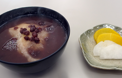 7日の朝は七草粥。この一年の無病息災の願いと、正月の飲み喰いで弱った胃を休めるためと言われています。おかゆは胃に優しい。お米から炊き上げ、小さな切り餅を入れています。