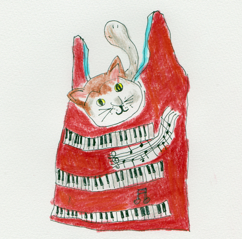 イラストネコレジ袋 コンビニではネコ入れてくれません。