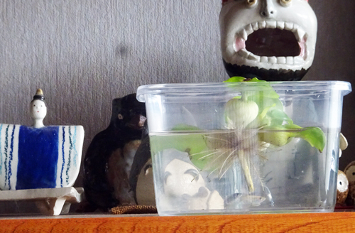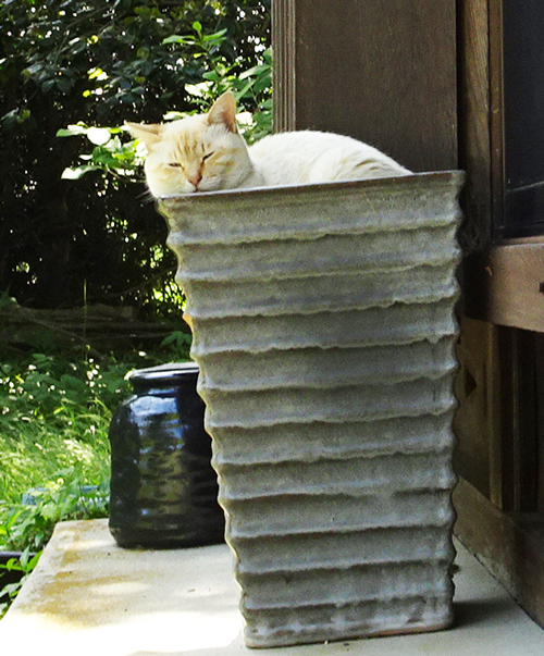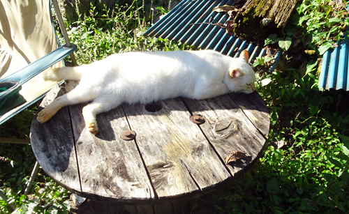 玄関先で白ネコがこちらを見ている。最近赤ちゃんを二匹生んだよ。一匹はお嫁入りしたが、もう一匹居る。どうだんと言われた。避妊しないといかんなとポツリ 。家には、おなじみの外ネコが数匹来てエサをあげているのです。