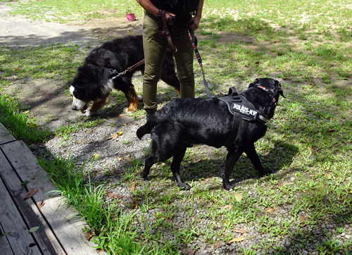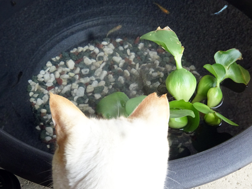 ノッコ 庭先のメダカの瓶をのぞいています。