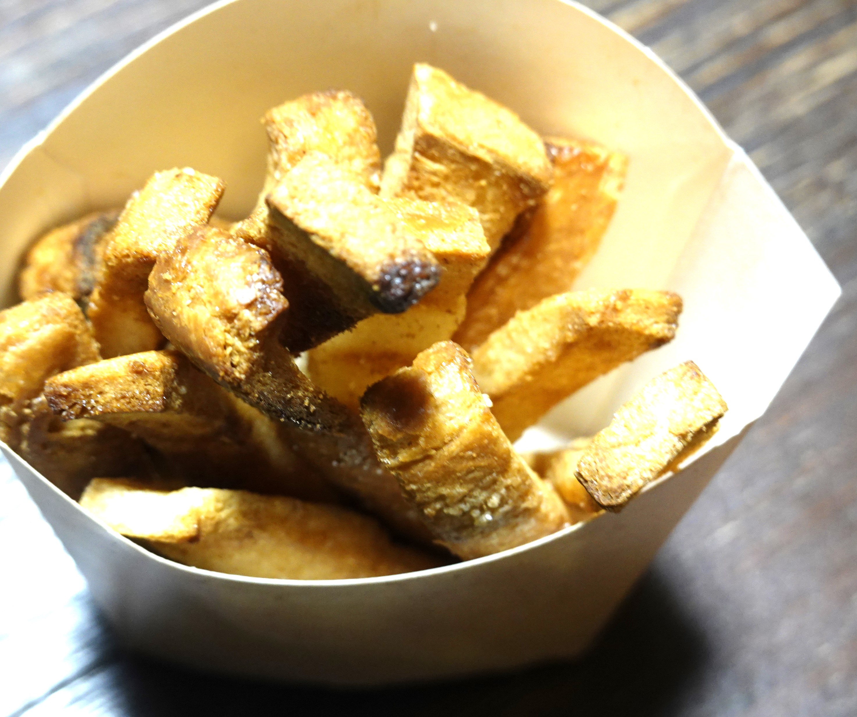 とある豊橋のスーパー パンもお店で製造 横にパンの耳で作ったラスク 限定商品で人気があるようだ