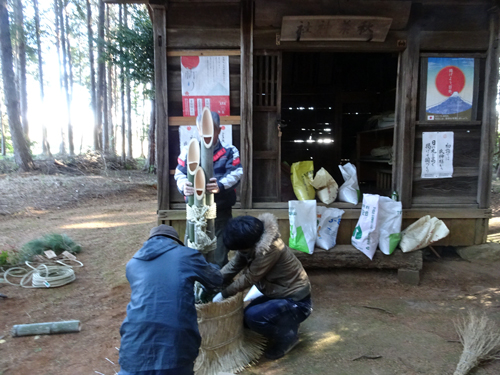 年末行事 神社の門松たてを神社総代4人でしました。氏子のいる一般の神社と異なり、秋葉神社は、火災予防の神社で、区管理です。