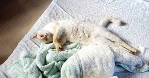 ただ、ネコは熟睡して無反応ではなく、寝ながらも意識はあるようです。主人が一緒に居てくれていること承知しているので、安心しているようです。