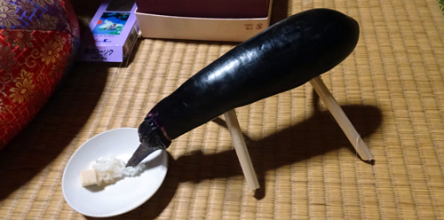 とあるスーパーで、ナスとリンゴを見て、気になって購入。通常は、ナスとリンゴは同じくらいの大きさだが、やけに大きさが違う。新城特産の、天狗ナスはビッグ。リンゴはニュージーランド産で、手に入るほど可愛い。