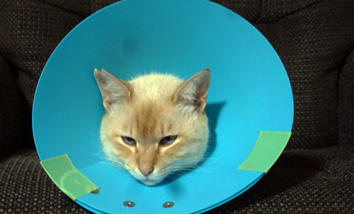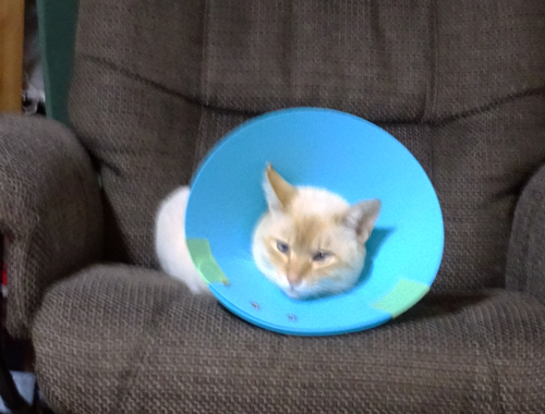 ノッコ オペした12日からカラー着用 不自由生活です。また、外へ出られないのもストレスとなっています。