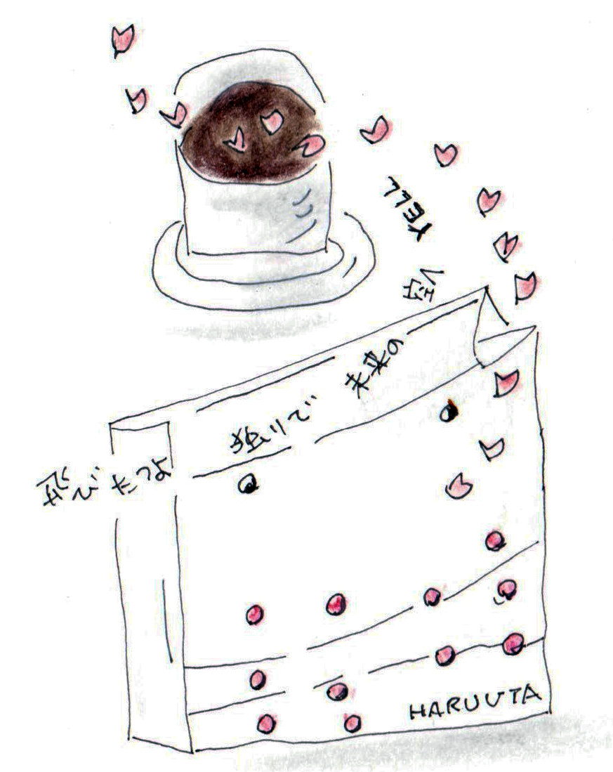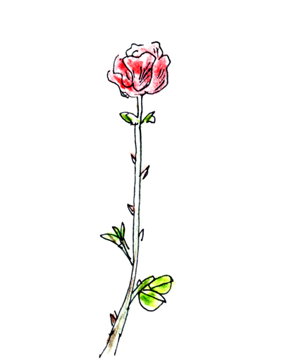 イラストは、大部前にカフェ爾今で、冬に1枝咲いていた冬薔薇です。