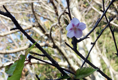 庭の河津桜 一輪咲きました。これから我が家の、サクラロード5月まで続きます。