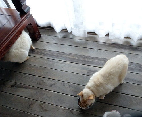 元旦に配偶者が2階でテレビを観ていたら、横をノッコが何気なく通り、食事をしている。よく見ると、山で捕らえた手のひら大の野鳥を食べている。