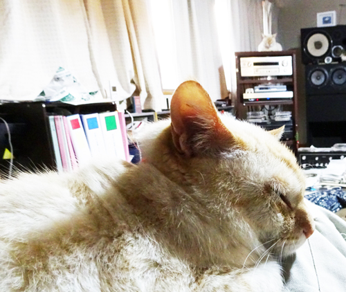 トモお腹の上で抱かれながらの1時間 いびきかいてリラックス。最近互いのお気に入りです。