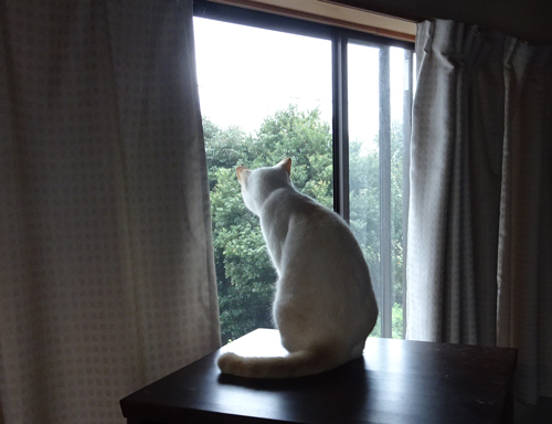 ネコ達は、室内ですので 主人が一緒に居るどうかが、不安のバロメーター。