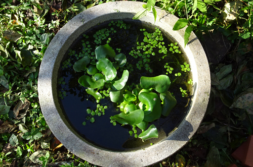 以前は、人のこぶし大のカエルが、入って水浴びをしていたので、排除。近くを歩いていた沢蟹を臼に入れて、配偶者に叱られた。今後 どんな訪問者が来るか? 日々見ています。