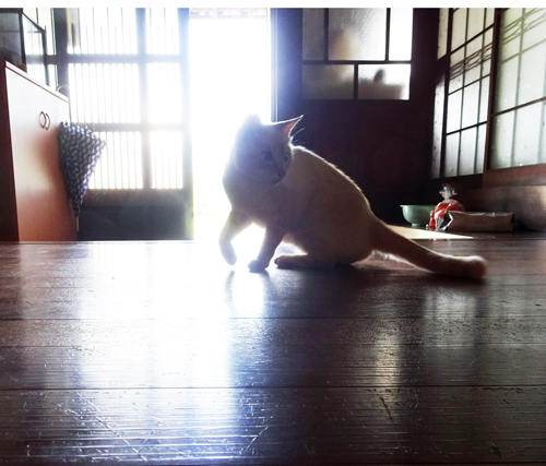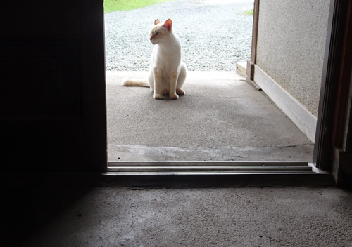 ノッコだけフリーで自由気まま生活です。ご主人が一緒にいるので、嬉しい? なんでもお手伝いしますよとミャー 2時過ぎまで室内で一緒に 昼寝。家へ入るときは玄関であいさつして入る礼儀正しさ。玄関内で、訪問者のお迎えと思えば、床が涼しいので、床にべったり。