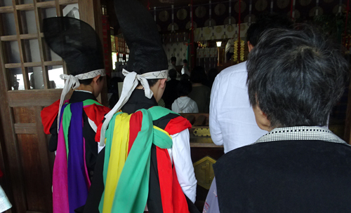 その後は、本殿お参り。参拝のしかた解からず、付き添いの長老が指導、微笑ましい。