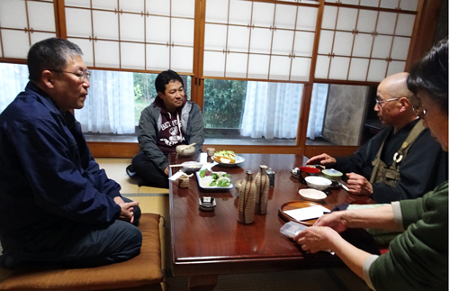 作家は、古くからの知人 麻の服作家 専門学校をでて、服を作り始めたのは結婚後と語り、照れながらパンフレットを差し出しました。中国語 日本語併記の作家紹介 率直に自分を語っています。