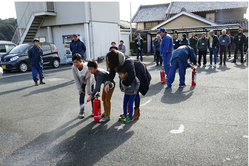 写真2 第2回区防災訓練 いつおこるか分からない災害 火事に備えての訓練 多数参加 組長さん 消防団 子共会も参加 参加したキッズ 水消火器に興味シンシン 喜んで操作訓練 。防災訓練により、互いの意識高まりました。