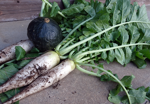 有機肥料で栽培した、ダイコンとカボチャを頂戴しました。