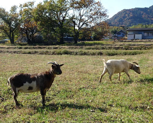 ヤギ舎周りは すっかり晩秋の風景。モミジが紅葉し彩を添えています。新城桜淵公園 カフェグロリアスで珈琲を飲みながら見るモミジに魅了され、購入した苗木 大きく育ちました。