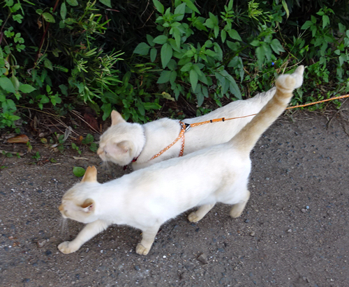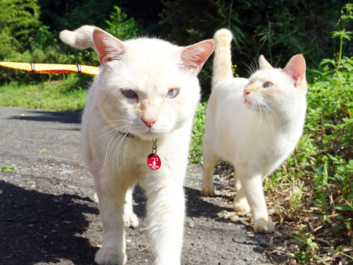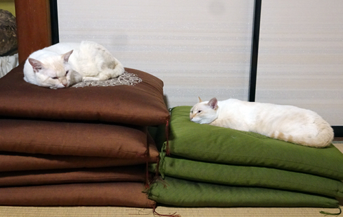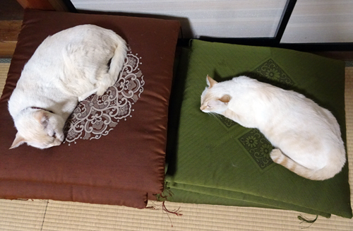 我が家の元ノラさん2匹。最初のメスネコが、ノッコ。後で家に来たオスのノラさん、ノッコが連れて来たので、トモ。