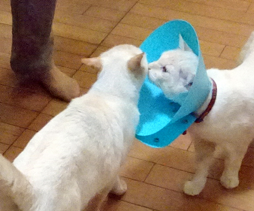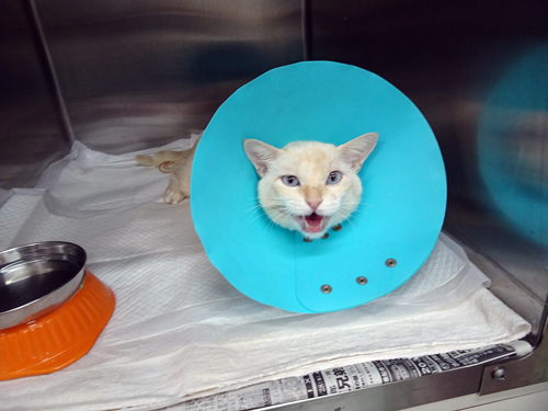 先生の説明には、手術中写真 切り取った患部 血液データを提示しての丁寧な説明でした。仁丹ほどの結石が狭い尿道に詰まり、時間が経てば死に至ります。小さなネコには仁丹ほどの小粒でもダメージです。配偶者は助産師ですので、データ読め、説明理解できますのでホットしていました。