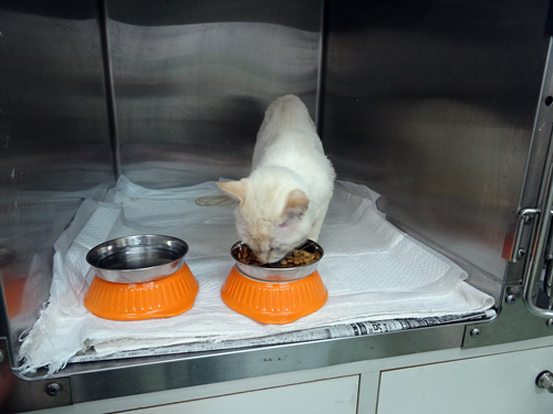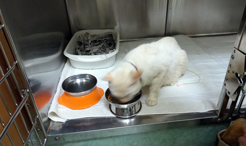 面会では食欲旺盛ですが、顔が情けない。帰り際には ミャーミャーなき 帰らないでと甘えています。もう少し入院です。