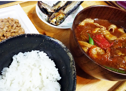 具だくさんみそ汁が実に美味しいく、毎日飲んでも飽きない。