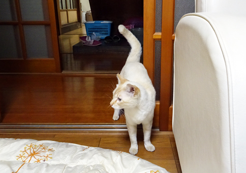 警戒心の強かったネコも昨日は初めて背中を触らしてくれ、もう 準家族です。
