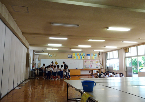 訓練後 消防署による訓練講評 来賓祝辞 に続き「火の用心三唱」で閉めます。火の用心三唱は、通常のばんざい三唱に代わる、消防独特の式辞です。この発声役を受けたまわりました。
