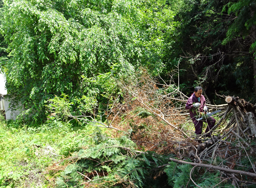 私は、主としてヒノキの間伐材が動かないように、しっかり固定するお役です。座布団に座って、のんびりではありません。重たい裏方です。