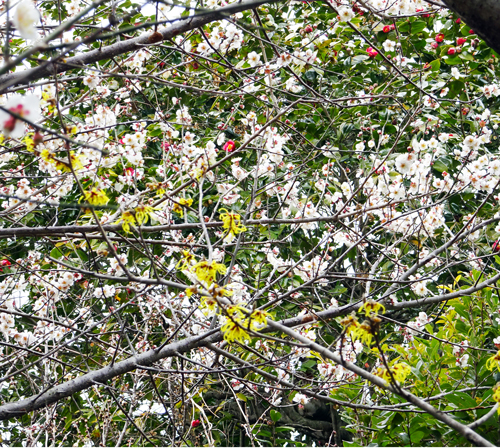 百花繚乱は、いろいろな花が咲き乱れることをいい、秀でた人物が一時期に多く出ることにも例えられます。庭の藪椿 梅 彼岸桜 マンサクが咲いています。重なって咲くのはほんのひと時です。今日は、テレビ音楽番組百花繚乱です。