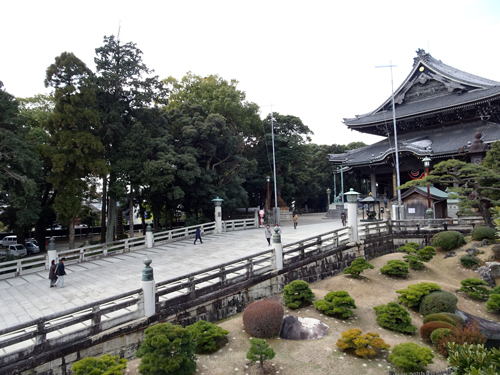 瑞祥殿から、長い渡り廊下の先が本殿です。本殿前でお参りし、おさい銭を入れるのが通常ですが、本殿内で多くの僧侶たちの響き渡る読経を聞いていると、厳かな気持ちになります。