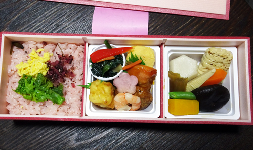 ご祈祷の後 精進料理を頂きました。お寺では点心と称しています。朱塗りの器が鮮やかです。禅宗では食事も修行と言われていますが、皆 残さず食べようという思いでした。ご飯は多かったが、完食です。