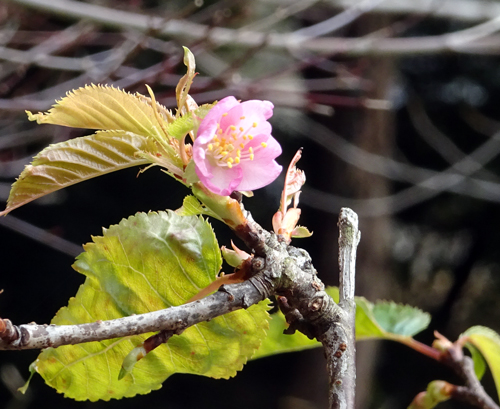 玄関にはバラの花が。冬に咲くバラを、冬薔薇と書いて、ふゆそうびと読む。季節を感じられます。
