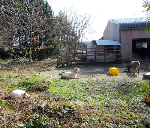 皆 メスですので女子会です。ネコのノッコ 女子会に入りたくてしょうがなかったが、今一歩の勇気と、警戒心があったのですが、もう 堂々の正会員。イヌ ヤギは 小さいのがチョロチョロしているなあという感じです。