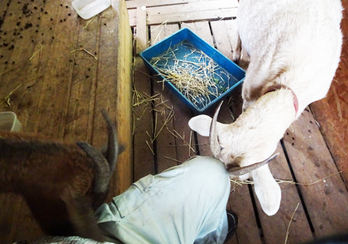 ヤギとのコミュニケーションは、ボディーラングエッジ そして、行くヨ 帰るヨなどの日本語も理解している。