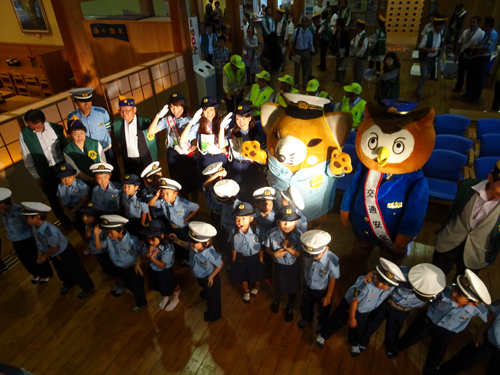 子ども制服が可愛い。K太も少しばかり大人っぽく、満足げでこちらに向かってピースサイン。子ども警官制服は園児に大人気で、在園中に着れたのラッキーかも。お母さんとじいちゃん ばあちゃんも参加。園児23人でギャラリーはその数倍の人数でした、
